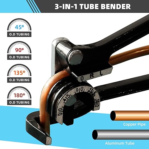 CCLIFE Rohrbiegegerät 3-in-1 Rohrbieger 6-8-10 mm Rohrbiegezange 0-180° Manueller Biegezange für Aluminium Messing Kupferrohr Dünnes Hohlrohr