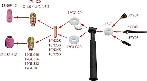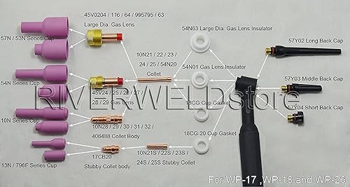 RIVERWELD WIG-Kurzes Gasspiegel - Kollektorgehäuse 17GL332 10N24S 2,4 mm Kit für SR WP 17 18 26 TIG-Schweißbrenner, 10 Stück