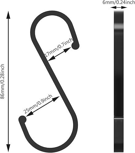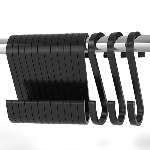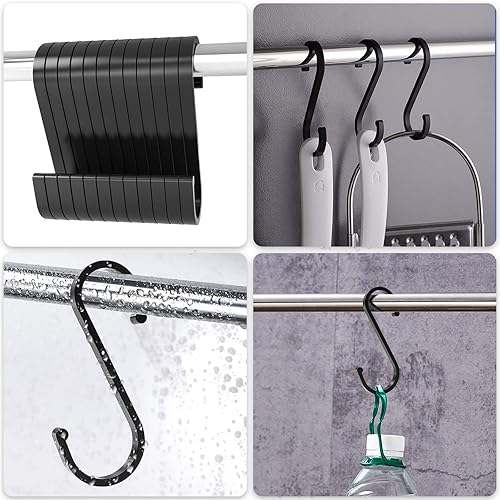 LISOPO S Haken, 12 Stück S Haken Schwarz S-hook für hängende Töpfe und Pfannen S-Haken Aluminium ideal Küche, Schrank, Garage und Garten