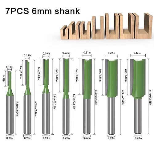 Marstey 7-teiliges Holzfräser-Set, 1/4 Zoll Fräsbohrer-Satz, gerader Schaftfräser 3/4/5/6/8/10/12 mm Schnittdurchmesser, Schnittnut Fräser mit 6 mm Schaft
