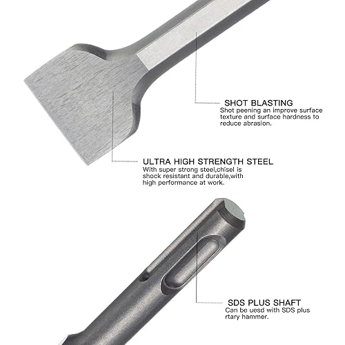 HPMAISON Fliesenmeißel SDS Plus Meißel 185mm x 75mm, 25 Grad abgewinkelt Meißel Verbreiterungsserie, Brechmeißel, gebogener Fliesenmeißel, Flachmeißel breit für Fliesen und Fliesenkleber enfternen