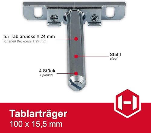 Gedotec Tablarträger Regal-Halterung verstellbar | 4 Stück Regalhalterung unsichtbar | SUPPORT | Regal-Bodenträger aus Eisen verzinkt - Regalträger | Fachboden-Träger für Wand-Montage