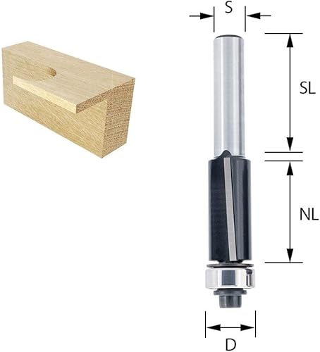 ENT 13460 Bündigfräser HW, Schaft (S) 8 mm, Durchmesser (D) 12,7 mm, NL 25,4 mm, SL 32 mm, mit Achswinkel und mit Kugellager