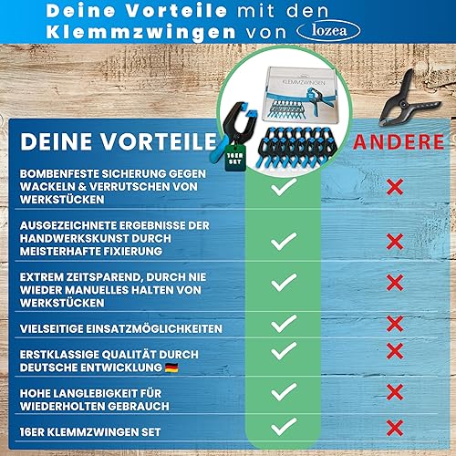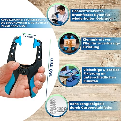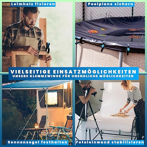 LOZEA 16er-Set Klemmzwingen mit einer Klemmkraft von 13kg & einer Spannweite von 7cm für bombenfeste & stabile Fixierungen zum Leimen, für Fotoleinwände oder als Poolplanen-Sicherung gegen Unwetter