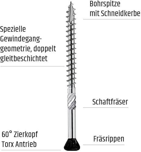 Terrassenschraube mit schwarzem Kopf, ETA Zulassung, Edelstahl gehärtet (5x50 mm - 100 Stück)