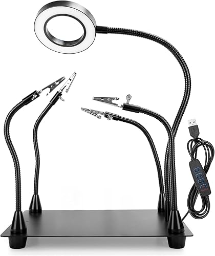 Dritte hand Löten, Löthilfe Dritte Hand mit 5X Lupe Licht, Lötstation mit 4 flexibel Arme, Löthilfe für Schweißer, Schmuckhersteller, Handwerk, Liebhaber