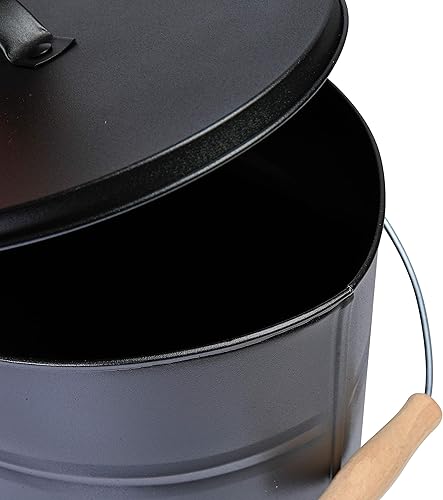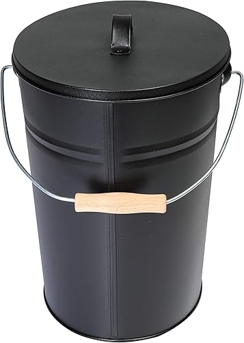 Kamino-Flam Ascheeimer mit Deckel - Kohleeimer 15 Liter aus Stahlblech im Schwarz - Kamineimer mit Deckel - Ascher Allzweckeimer für den Innen- und Außenbereich