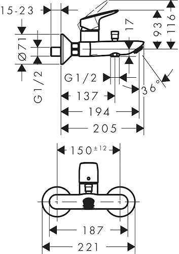hansgrohe Logis - Badewannenarmatur Aufputz für 2 Verbraucher, Mischbatterie Badewanne mit Auslauf Länge 19,4 cm, Einhebelmischer Wanne, Chrom, 71400000