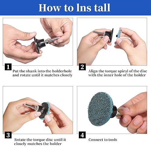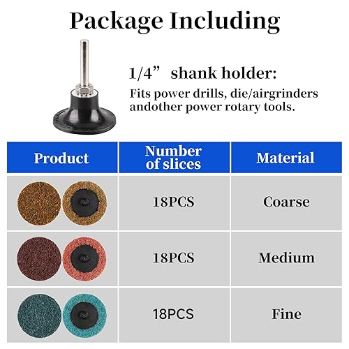 Shineboc 57 Stück Schleifscheiben Set, 2 Zoll Roloc Schnellwechsel Scheiben mit 1/4 Padhalterschaft für Stabschleifer Oberflächenentrostung, Schleifen, Polieren, Rostfarbe