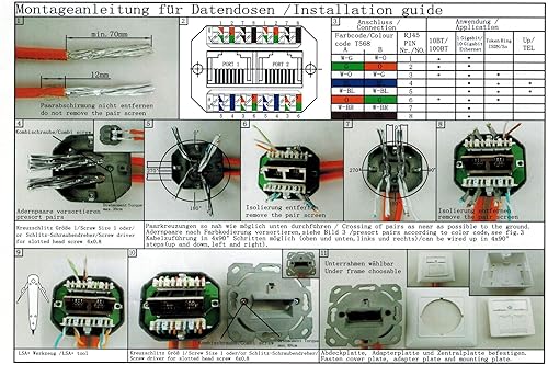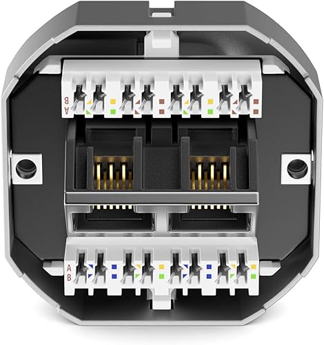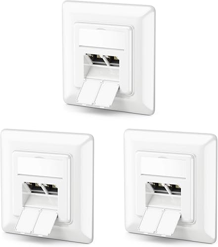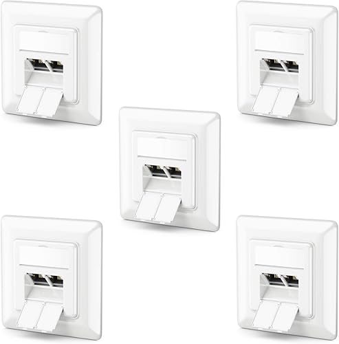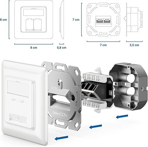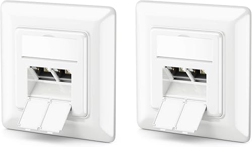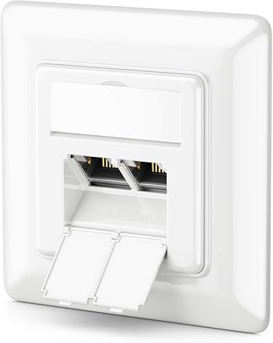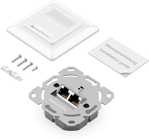 deleyCON 1x CAT6a Netzwerkdose 2x RJ45 Buchse Geschirmt Unterputz Montage 10 Gbit Ethernet Netzwerk LAN Dose Patchkabel Netzwerkkabel Verlegekabel Weiß
