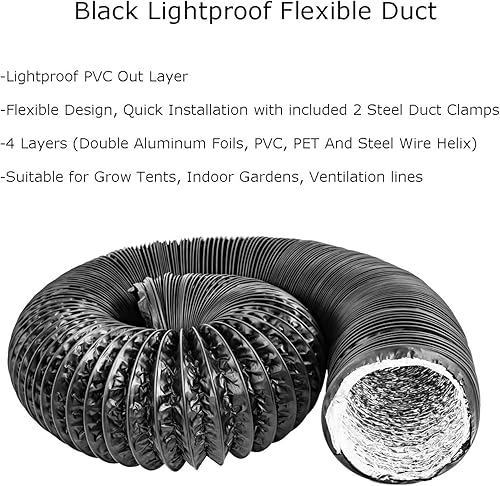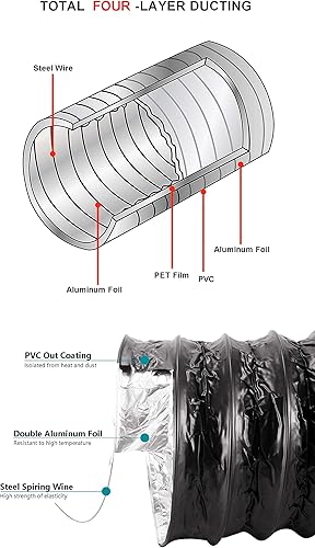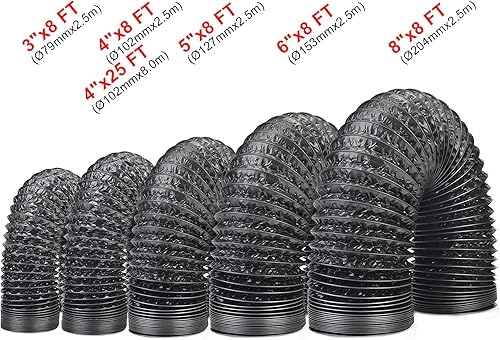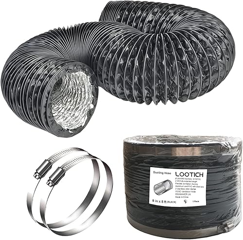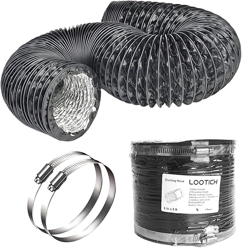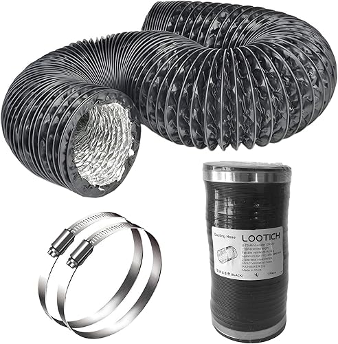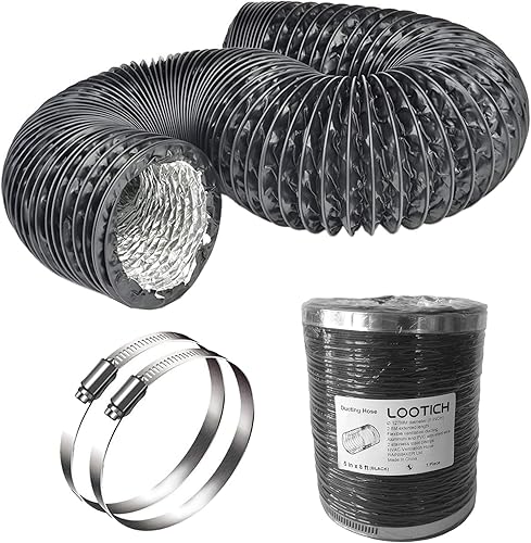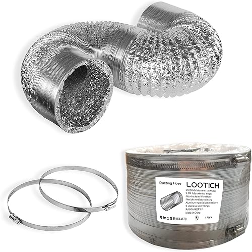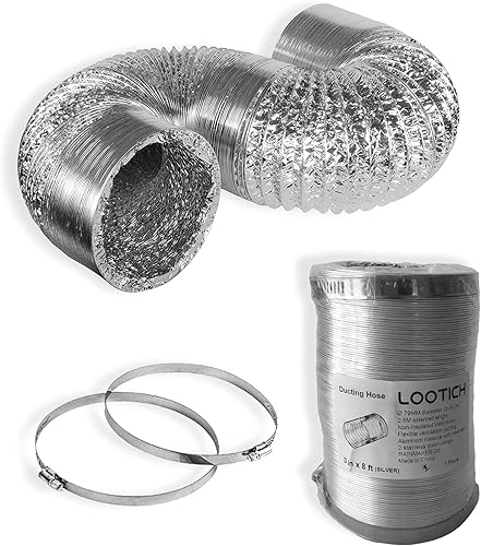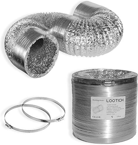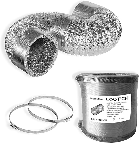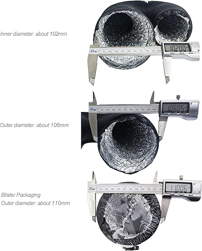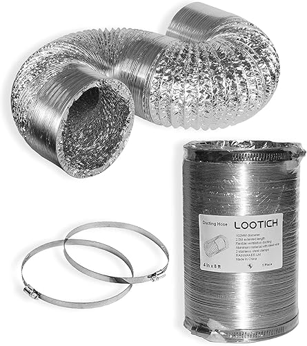 LOOTICH Aluflexrohr Ø 102mm Länge 2.5m Abluftschlauch Flexibel Luftleitungen Aus Aluminium Rohr Flexschlauch für HVAC Lüftung 2 Stück Schlauchschelle Edelstahl Inbegriffen