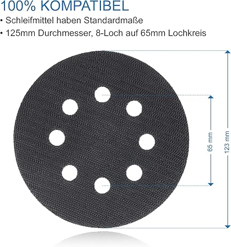 125mm Schleifteller passend für Bos-ch PEX 220 A,GEX 125-1 AE,PEX 220 AE, Skil 7402/7490(für Farbe, Kitt, 8 Löcher, Zubehör für Exzenterschleifer)