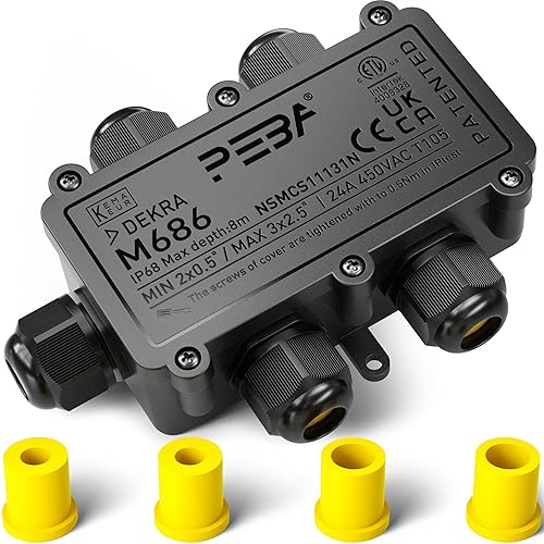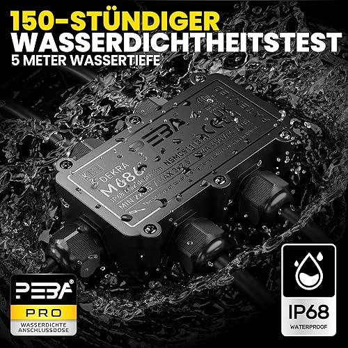 PEBA Abzweigdose,Erdkabel Klemmdose Verbindungsdose, 2 Wege Junction Box, IP68 Wasserdichte Verteilerdose, Kabelverbinder Aussen, Elektrischer Außenverteilerdose, Kabeldurchmesser 4mm-12mm, schwarz