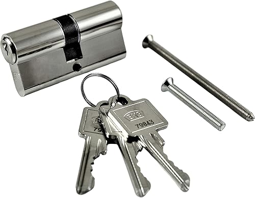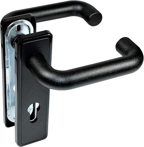 SN-TEC Stahltür/FH Tür Komplett Set Beschlag (beidseitig Drücker) + FH Schloss (DIN Links/Rechts Falle und Riegel Mittig) + Profilzylinder