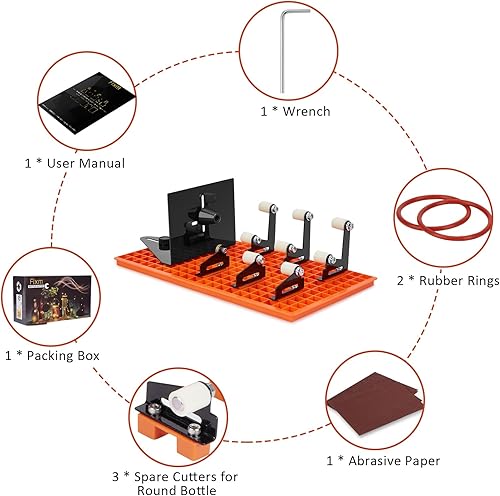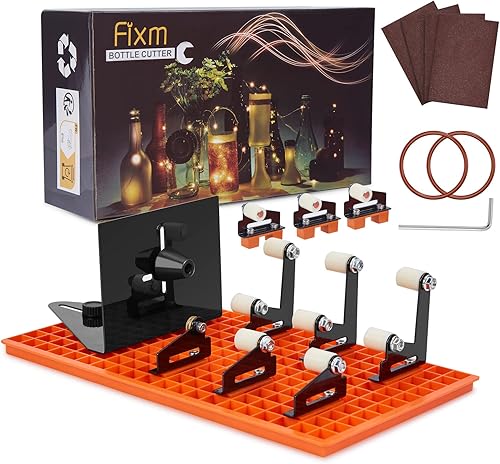 FIXM Glasflaschenschneider Set, DIY Glasschneider für eckige und runde Flaschen mit aufsteckbarer Montagebasis und verstellbarem Abweiser, komplettes Flaschenschneider-Set mit Zubehör