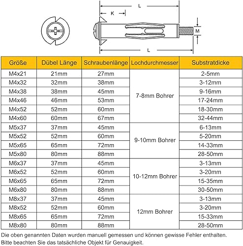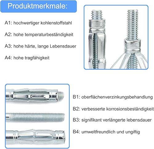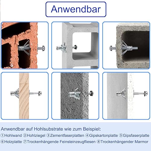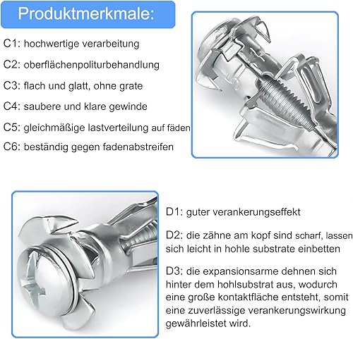 Lakada Hohlraumdübel Metall verzinkt Hohlwanddübel M8 x 65mm für Befestigungen in Plattenbaustoffen, 25 Stück Hohlraum Metalldübel Spreizdübel