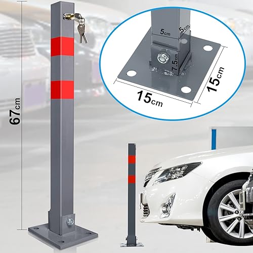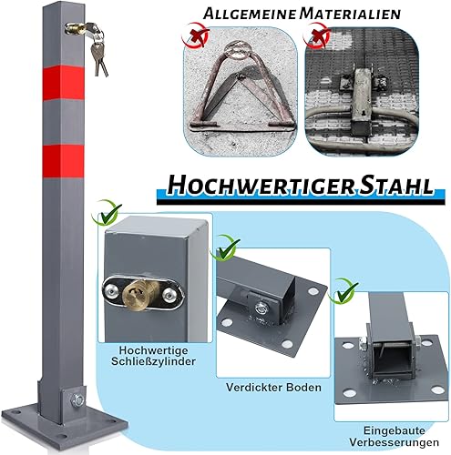 Tubiaz 1 Stück Parkplatzsperre Parkpfosten Klappbar Absperrpfosten mit 3 Schlüssel, Parkplatzsperren mit Reflexstreifen, Robust und Stabil Sperrpfosten