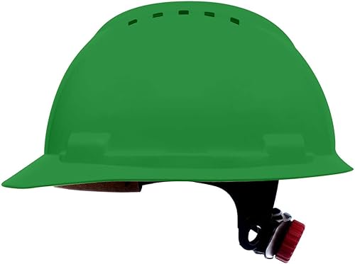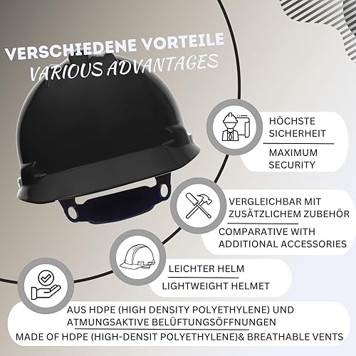 BBU Bauhelm SP200T Schutzhelm Bauarbeiterhelm - EN 397 Zertifiziert, Leicht & Belüftet, HDPE, 4-Punkt-Befestigung, Kurzes Visier, Schraubenverstellung, 348g, Zubehör-Öffnungen