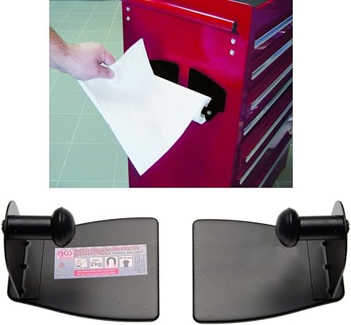 BGS 67156 | Magnet-Spraydosen-Ablage | 210 x 75 x 70 mm | 6 starke Magnete, Haltekraft ca. 1,8 kg + 67159 | Magnet-Papierrollen-Halter | 2-tlg. | schwarz | Küchenrollenhalter