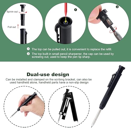 eROOSY Multifunktions Anreißwerkzeug, Konstruktionsbleistift, Anreißer-Linienmarker, Holzbearbeitung Anreißwerkzeug mit Tieflochstift, Markierungswerkzeug, DIY Holzbearbeitung Anreißer