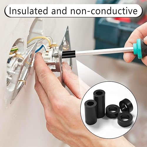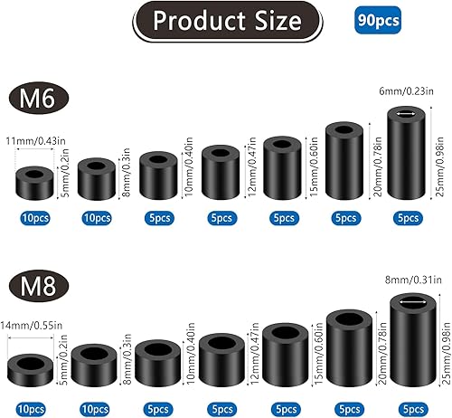 gaoduanluoluo 90 Stück Runde Abstandshalter Kunststoff, Distanzhülsen für M6 M8 Schrauben, Isolierung Beilagscheiben Ohne Gewinde Säulen Set, Unterlegscheiben Kunststoff mit Aufbewahrungsbox (Schwarz)