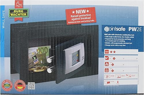 BURG-WÄCHTER Wandtresor mit elektronischem Zahlenschloss, zum Einmauern, 4,5 l, 9,4 kg, Point-Safe PW 2 E, Schwarz
