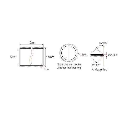 sourcing map Hülsenlager 12mm Bohrung x 14mm Außendurchmesser x 15mm Länge Gleitlager gewickelt ölfreie Buchsen 10 Stück