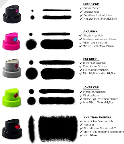 Ersatz Sprühkopf Set 15 Stück für - Sprühdosen - sehr dünne Linien bis sehr große Flächen - Kalligrafie - im praktischen Montana Beutel