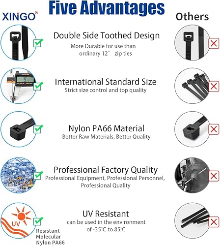 XINGO 100 Stück Lang Kabelbinder Schwarz, 450mm x 9mm Breit Kabelbinder, 114KGS Zugfestigkeit, UV Beständig Kabelbinder lang Set, Großer Kabelbinder für Kabelmanagement