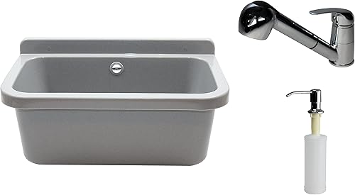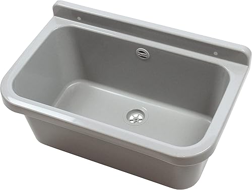Waschbecken Ausgussbecken mit Seifenspender 55 cm x 34 cm x 21 cm Spülbecken Waschtrog mit Überlauf Waschbecken für Gewerbe Waschraum Garten inkl. Ablaufgranitur