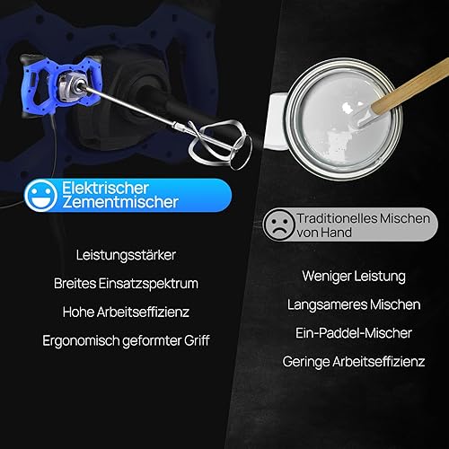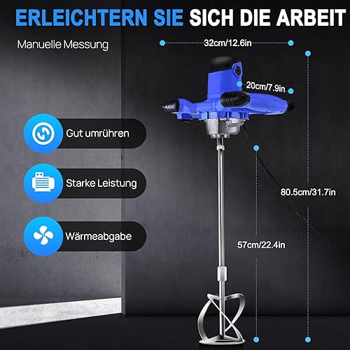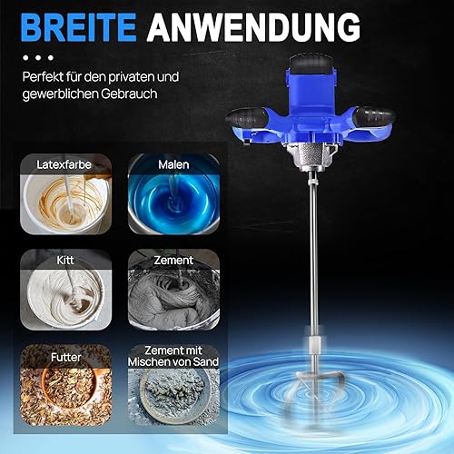 2600W Farb-Mörtelrührer,Rührwerk, Betonmischer, Industriemischer,M14 Rühreraufn., 6-Gang variabler rührgerät mörtel, verwendet für das Mischen von Farbe,Zement, Beton, Mörtel 120x590mm