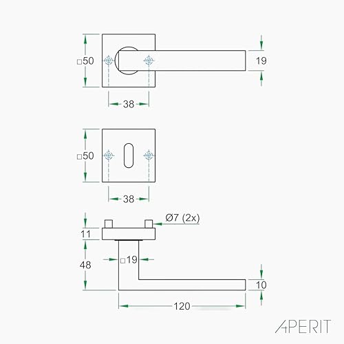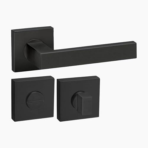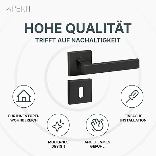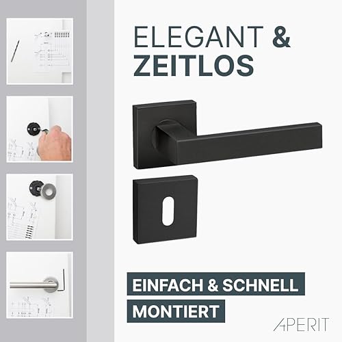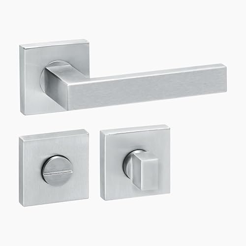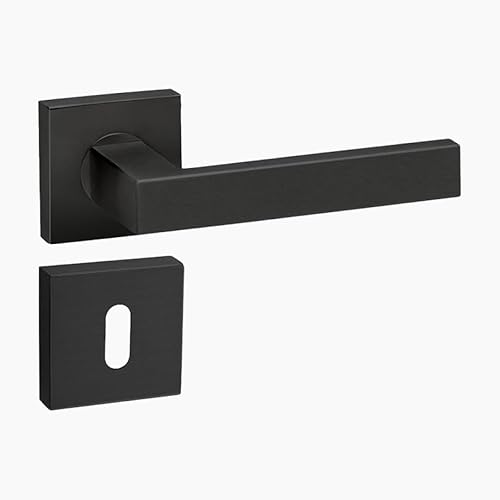 Aperit Türgriff: Edelstahl Türklinke Paar mit Profilzylinder Rosetten auf Quadrat Rosetten - Drückergarnitur für Innentüren – Eckig Modern 49.334.01