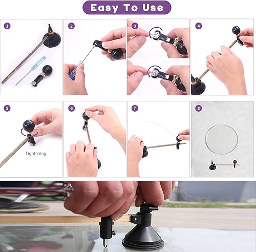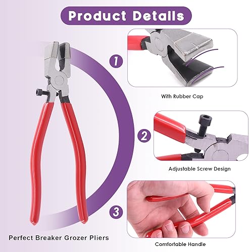 Swpeet 11-teiliges Glasschneider-Werkzeug-Set, gebogene Backen, Glaslaufzange mit Gummispitzen, Bleistift, Ölzufuhr, runder Glasschneider, 2 Klingen mit Öl-Tropfer und Schraubendreher