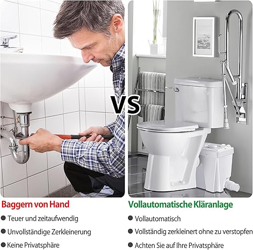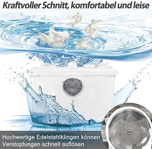 Froadp 700W Hebeanlage WC Integriert Fäkalienpumpe mit Rückschlagventil 180L/min Vier Wassereinlässe Schmutzwasserpumpen Hebewerk für Abwasser Kleinhebeanlage Schmutzwasser für Toiletten Waschmaschine