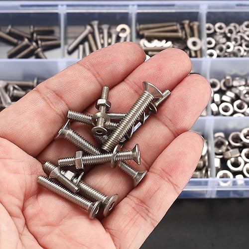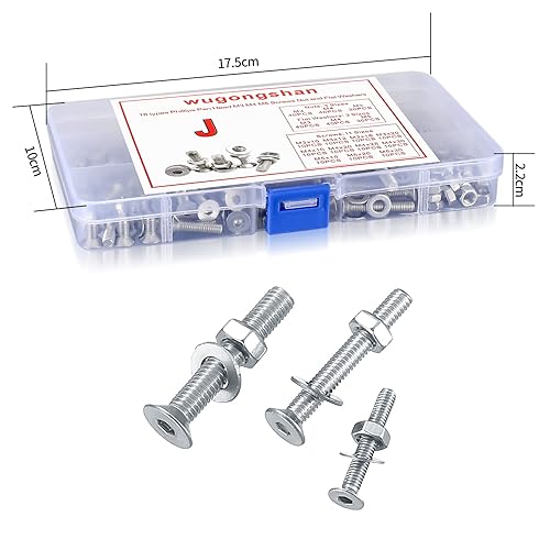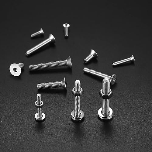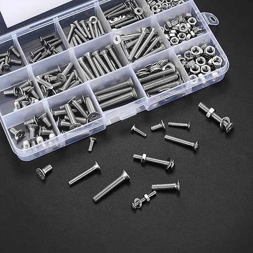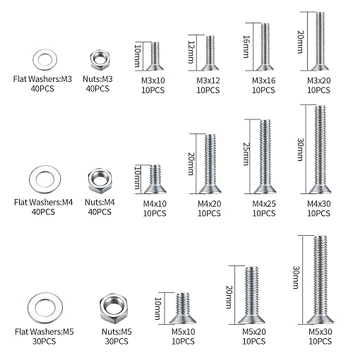330 Stk Flachkopf Innensechskantschrauben und Muttern und Unterlegscheiben Sortiments Set, M3 M4 M5 Edelstahlschrauben und Maschinenschrauben Senkkopf Schrauben (330)
