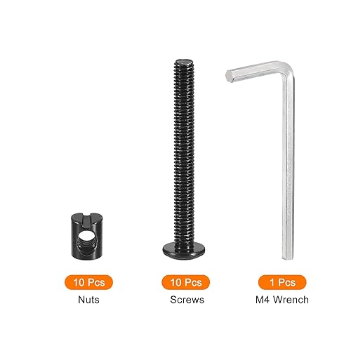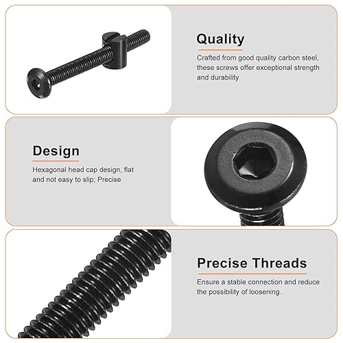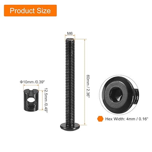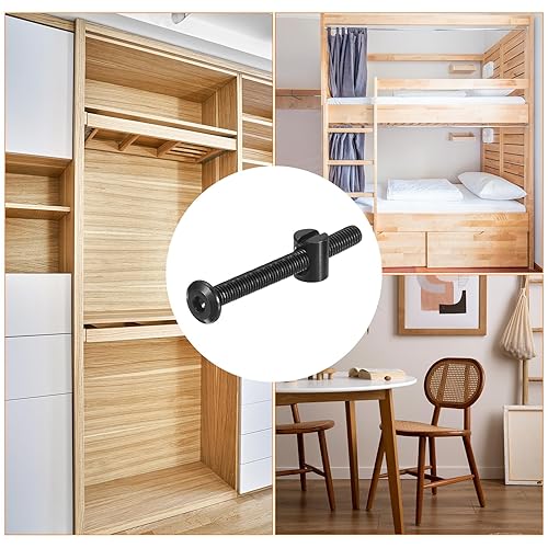QUARKZMAN 10 Stück Sechskantschrauben Bolzen mit Fassmuttern, M6 x 60mm Sechskantmöbelbettbolzen mit Schraubenschlüssel für Stühle und Kinderbetten, Schwarz