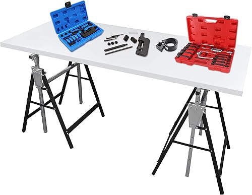 Cecaylie 2x Gerüstbock Arbeitsbock Tragkraft 200 kg 7-fach klappbock Böcke Höhenverstellbar 80-130 cm Metall Arbeitsböcke Gestelle Gerüstböcke Unterstellbock klappböcke