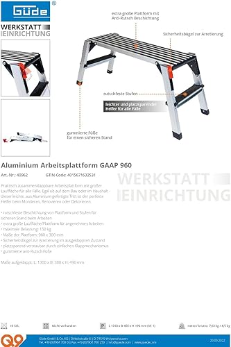 Güde Alu Arbeitsplattform, Trittleiter, Trittbank GAAP 960, bis 150 kg, 960 x 300 mm, Arbeitstritt, Podest klappar, Arbeitsbühne