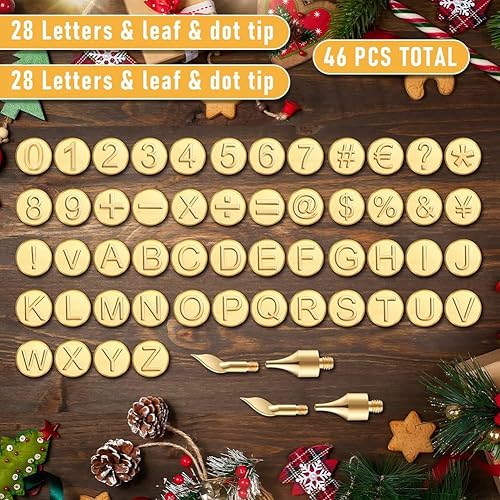 Qerwsdty 56-Teiliges Holzbrennspitzen-Set mit Buchstaben-Holzbrennspitzen-Set, EinschließLich Alphabet-Zahlen-Symbol, EU-Stecker