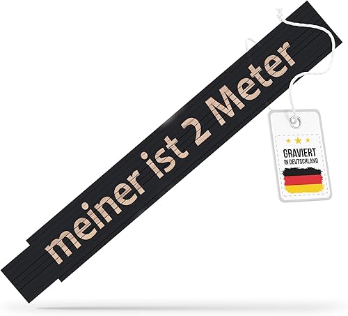 andSmile Zollstock schwarz - Meterstab mit Spruch meiner ist 2 Meter - lustiger Zollstock aus hochwertigem Buchenholz - lustige Geschenke für Männer, Papa, Handwerker, zum Vatertag, Geburtstag