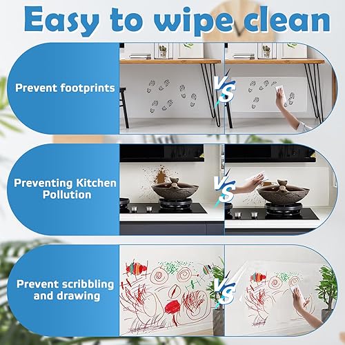 KXVXXV Klar Elektrostatische Wandschutzfolie Selbstklebend 40 × 200 cm, Wandschutz Klebefolie Transparent, Spritzschutz Wand Schutzfolie für Wände, Küche, Möbel, Büro, Schule
