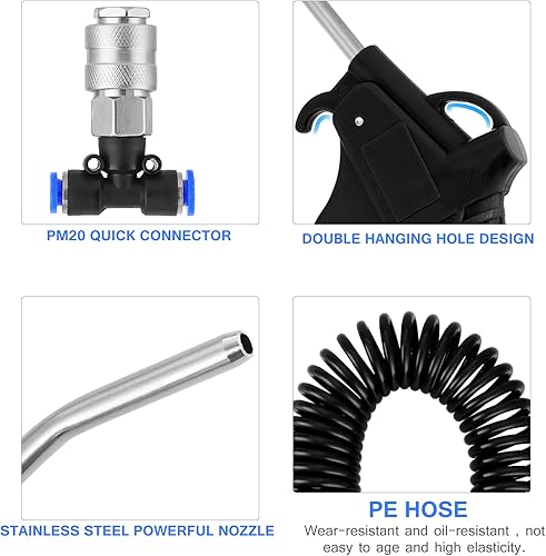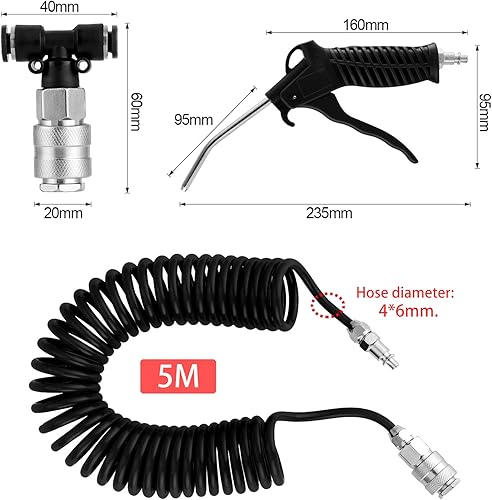 Knpwer LKW Air Duster Blaspistole,Druckluft Set, 5m Spiralschlauch Ausblaspistole LKW Auto(4 * 6mm)