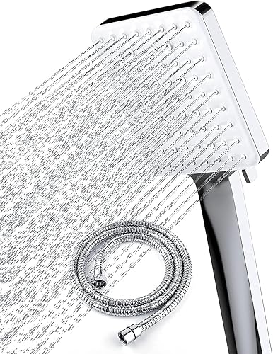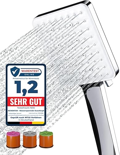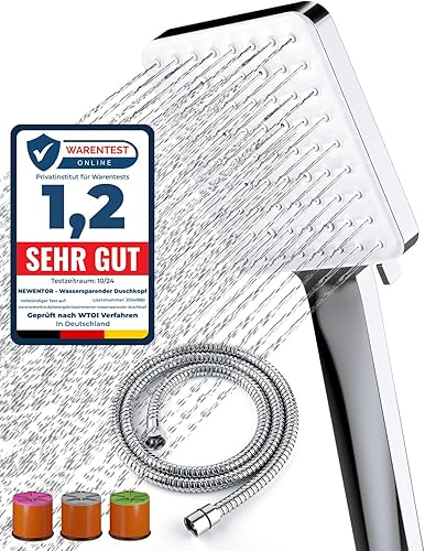 Newentor Duschkopf, Handbrause Duschkopf Großer, Wassersparender Duschkopf Hochdruck, Duschkopf Eckig mit 6 Strahlarten (Duschkopf ohne Schlauch),Matteschwarz