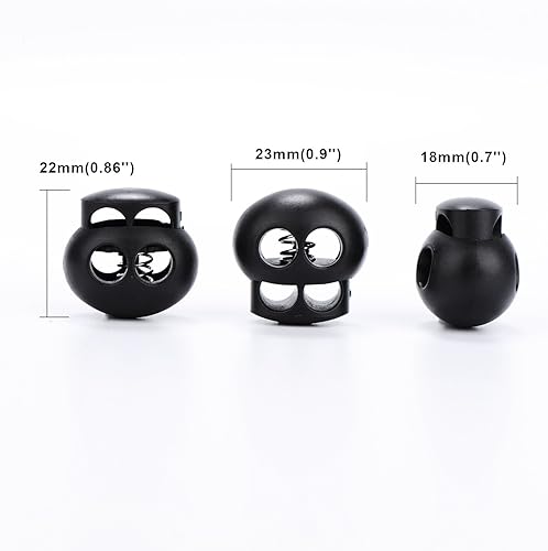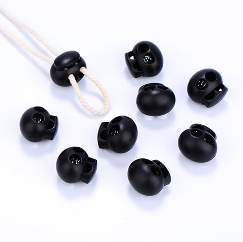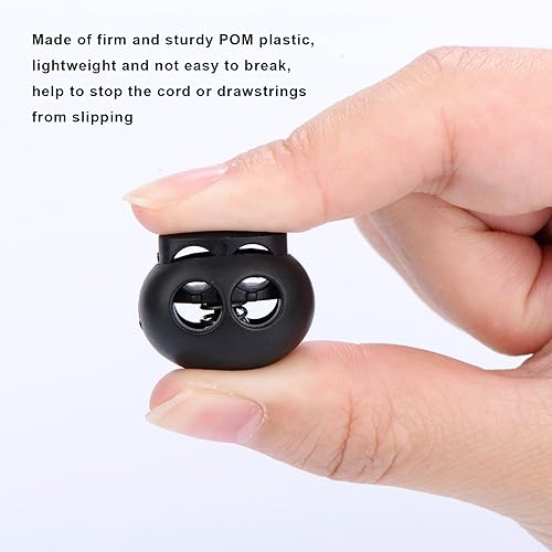 20 Stück Federzug Schlösser für Kordelzüge, Schwarzer Kunststoff Doppel Loch Kordel Ende Verschluss Oval Kippstopper Schieber