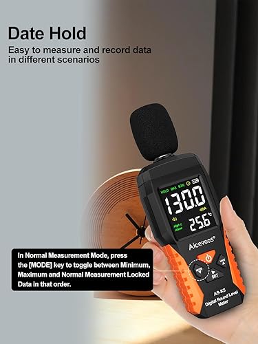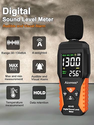 Aicevoos Dezibel Messgerät db Messgerät Schallpegelmessgerät Lärmpegelmessgerät 30~130 dB, Akustische und Visuelle Alarme, MAX/MIN Lärm-Messung
