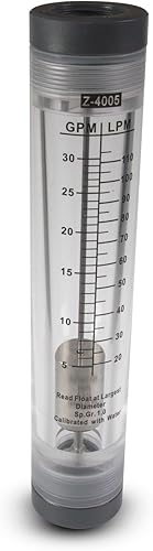 PureOne LZT-IG 30GPM Röhren-Durchflussmesser Messbereich 20 Bis 110 Liter/Minute, 1' Innengewinde. Hochwertige Acryl-Durchfluss-Messröhre. Durchflussmeter ist für Putzmaschinen geeignet