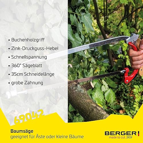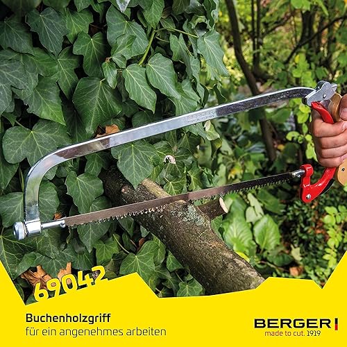 Berger Handbügelsäge 69042 mit Buchenholzgriff und stufenlos drehbarem Sägeblatt, Länge 35 cm