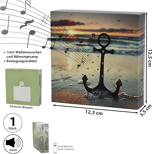 Soundbox 'Anker' Bewegungssensor | 12x12x3,5cm Pappe Kunststoff | Wellenrauschen Lautstärke regulierbar (1 x Soundbox Anker)