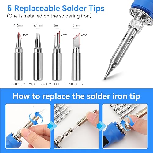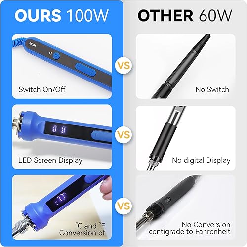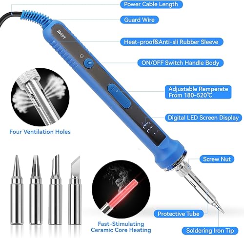 Lötkolben Set 100W,LED Lötkolben mit Temperatur Einstellbar 180℃-520℃,Soldering Kit mit Ein/Aus Schalter,50g Lötdraht,5 Lötspitzen,Entlötpumpe,Lötkolbenständer,Pinzette,Digitalmultimeter