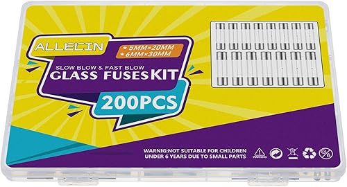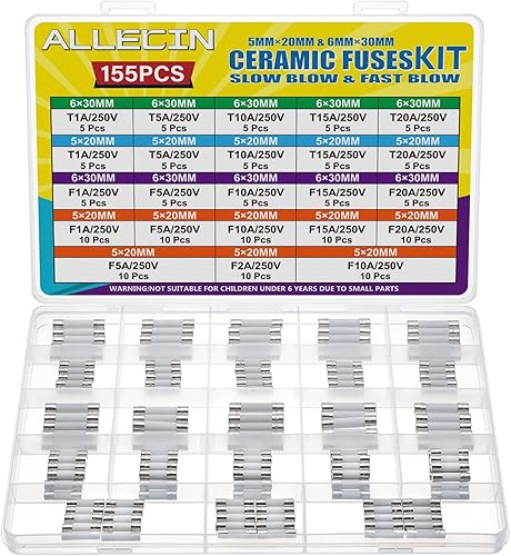 ALLECIN 21 Values Glassicherung Set 250V 5x20MM 6x30MM Sicherung Flink F 1A 2A 5A 10A 15A 20A Feinsicherungen Träge T 1 5 10 15 20 Ampere Feinsicherung Sortiment Glassicherungen Glas Sicherungen Kit